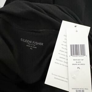 EILEEN FISHER Drape Cowl Neck Jersey Knit Dress Black Large Petite