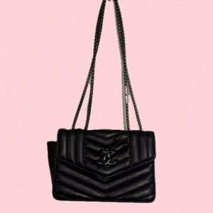 Chic black quilted design with iconic logo. Gently used, features a stylish chain strap. Ideal for versatile wear.