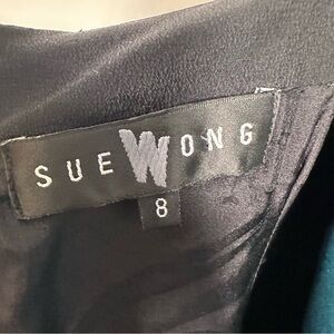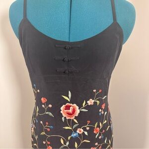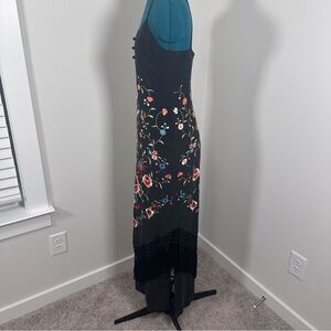 Sue Wong Vintage Black Silk Maxi Dress with Floral Embroidery & Fringe
