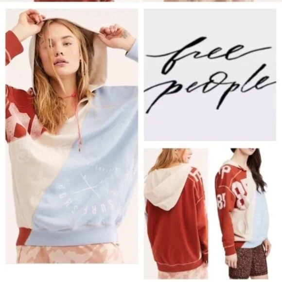 We The Free Red and Blue Patchwork Hoodie