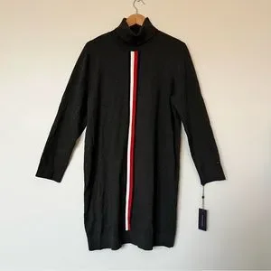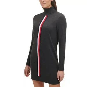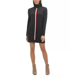 Cozy up in style with Tommy Hilfiger's soft sweater dress, a sleek turtleneck style accented with a chic colorblocked stripe at the front for added sporty vibes.