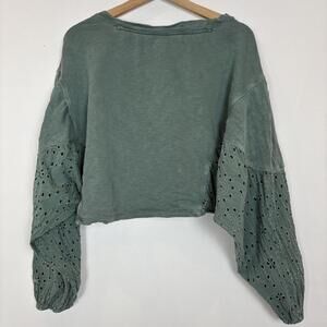 Anthro Pilcro Green Eyelet Batwing Boho Indie Crop Sweatshirt Size:M