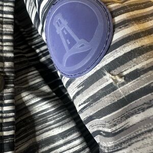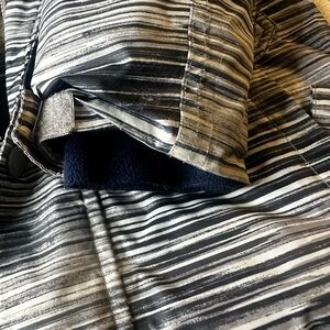 Warm and cozy puffer jacket. Stylish striped design. Ideal for cold weather. Jacket is a “grow with me” so the sleeves can be made longer for growing kids! In good condition besides minor tear on sleeve. Comes from smoke free home.