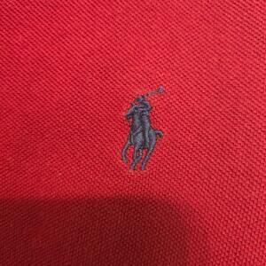 This is a classic Polo Ralph Lauren long sleeve polo shirt for men. The shirt is red, has a classic fit, and is made of comfortable cotton material. It is a size XL.