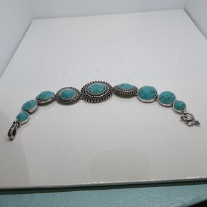 Lucky Brand Gem Bazaar Turquoise Stone Rounds Silver Tone Link Bracelet 7.5"