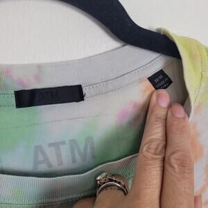 ATM Anthony Thomas Melillo women’s sleeveless tie dye dress, size Medium, in multicolor swirl pattern.