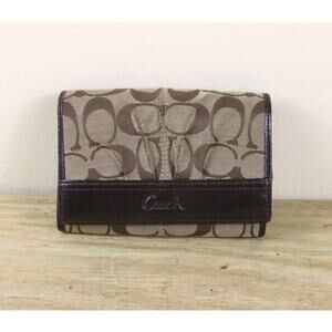 Coach Wallet Womens Brown Leather Signature C Logo Monogram Bifold Vintage