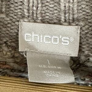 Chico's Fair Isle Sweater Womens M Beige Cotton Cable Knit Cozy Cottagecore