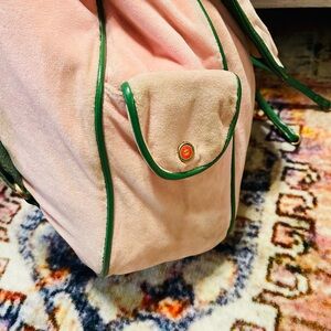 Vintage Juicy Couture backpack in blush with emerald trim. Does have some peeling around green leather