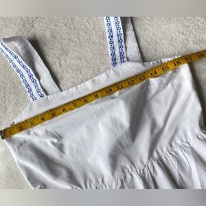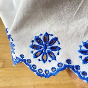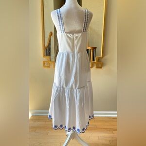 J. Crew Embroidered Saffron scalloped tiered white blue trim dress $128