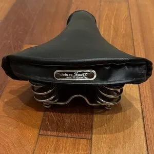 Upgrade your ride with this retro black leather deluxe Sport bicycle seat.