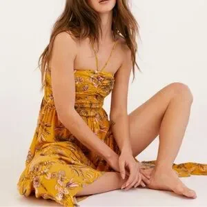 Free People One Step Ahead Mustard Floral Maxi Dress