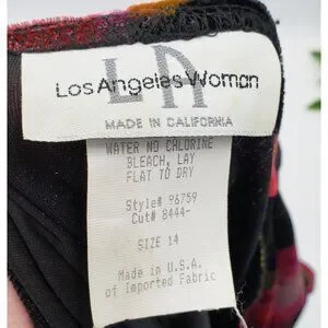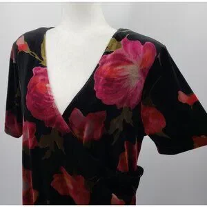 Vintage Los Angeles Woman Velvet Maxi Dress Size 14 Black Floral Faux Wrap