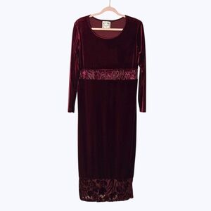 Vintage Whimsygoth Velvet Burgundy Long Sleeve Dress!