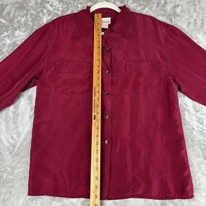 Vintage Moda Int'l 100% Silk Blouse Women's S/M Cranberry Red Button Up (1027)