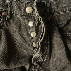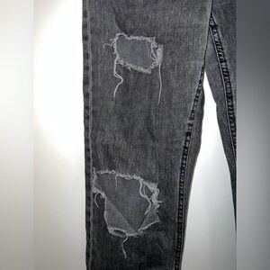 Stylish black jeans with a straight fit. Features distressed detailing for a modern look.