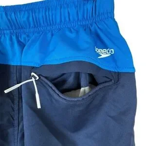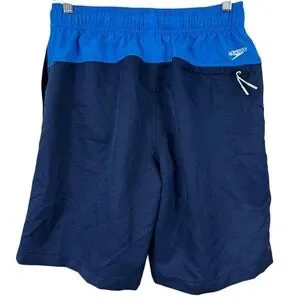 Speedo Mens Swim Trunks Dark Blue Bright Blue Color Block Drawstring Size Small