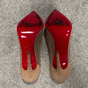 Christian Louboutin Follies Strass 100 RE F065. Nude mesh pumps with beautiful rhinestones. Worn twice for a wedding. I’m excellent condition. Original price was 1195.00. Now retails for 1295.00!