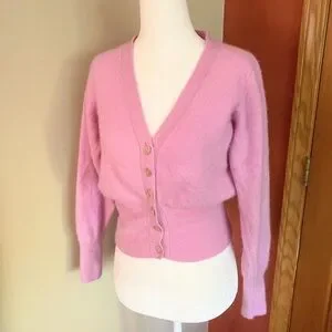 CRUSH 100% Cashmere Sweater Fitted Cardi in Purplish Pink Sz Small