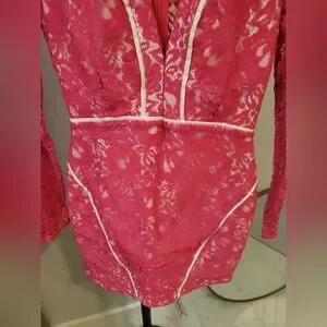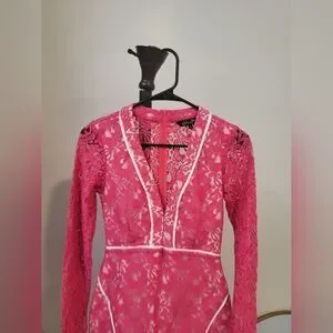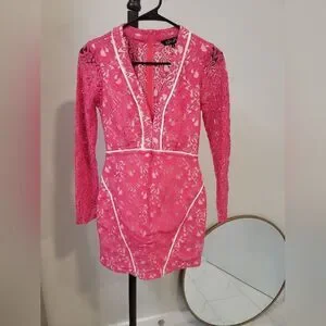 Elliatt Pink Lace Deep V-Neck Mini Dress, Small