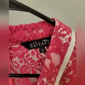 This Elliatt mini dress in a vibrant pink hue showcases the brand's signature blend of modern elegance and feminine charm. Crafted from delicate lace, the dress features a deep V-neckline and intricate detailing, making it a standout piece for various occasions.