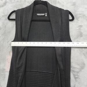 Vintage Y2K Sylvie & Mado Sweater Vest Womens S Black Sleeveless Open Front Waterfall