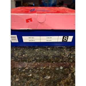The Kali snow boots for women are designed for winter with a black color and a round toe style. They feature a warm fur lining and a waterproof design, ensuring comfort and protection in cold weather. The boots have excellent traction with a synthetic outsole, making them suitable for casual occasions. The material is made from all man-made materials, and they secure with a lace-up closure. These boots are new with tags and come in a size 8, new in box. Ideal for casual winter outings.