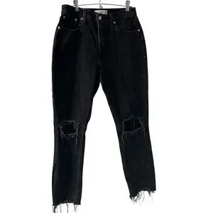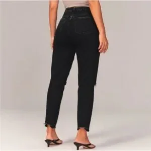 Cool distressed black jeans from Abercrombie & Fitch. High rise mom jeans, curve love style.