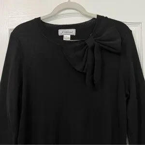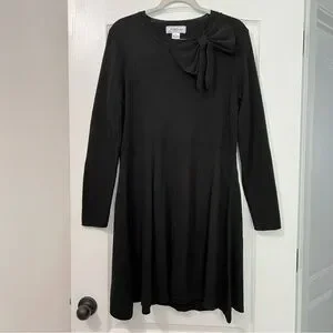 Vintage Jessica Howard Black Long Sleeve Knit Midi Dress with Bow Detail