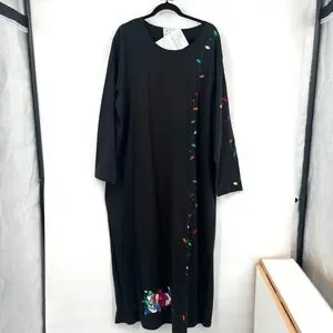 Vintage Quacker Factory Christmas Dress Black Embroidered 2X Cotton Maxi NWT