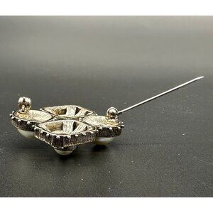 Vintage Brooch Pin Faux Pearl Rhinestones Silver Tone Victorian Style Jewelry