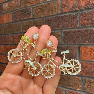 Anthropologie Blue Sweet Flowers Bicycle Crystal Earrings