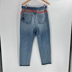 Unzip the super-high, double-layer waist of these cropped boyfriend jeans for a slouchy fit, or wear it zipped to define an hourglass figure.