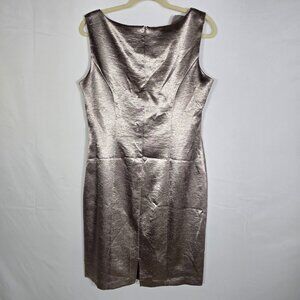 Dress Barn Party Dress Sz 14 Taupe Satin Midi Ruffle Sleeveless V Ruched Evening