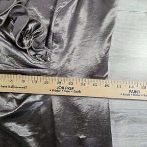 This Dress Barn party/cocktail dress in size 14 is a stylish and elegant choice for any special occasion. The taupe satin material with ruffle accents and v-neckline gives it a feminine and sexy look, perfect for a cocktail party or wedding. The knee-length dress features a zip closure and is machine washable for easy care. Its vintage style combined with modern details makes it a classic and timeless piece that will never go out of fashion. Perfect for summer or spring events, this dress is sure to make you stand out and turn heads.