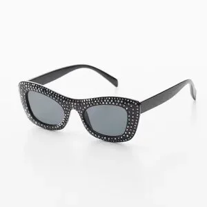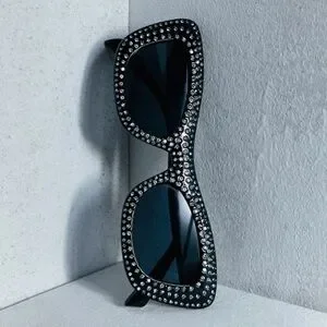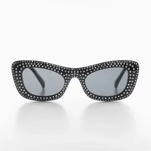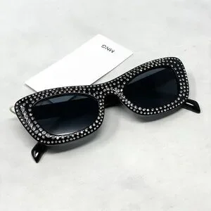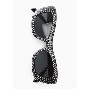 NWT Mango Mng Rhinestone Sunglasses Recycled Materials Black Retro Glam Sexy