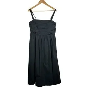 Abercrombie Fitch Black Poplin Pintuck Pleated Bust Midi Dress Petite Large LP