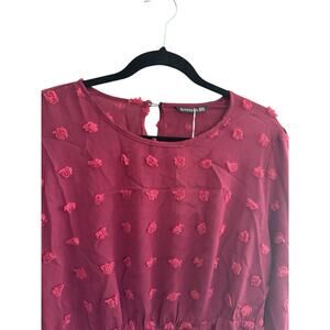 NWT BLOOMCHIC 14 16 Burgundy Tunic Top Balloon Sleeve 3D Flower Poofs #3656