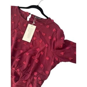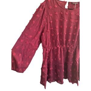 NWT BLOOMCHIC 14 16 Burgundy Tunic Top Balloon Sleeve 3D Flower Poofs - Elastic Waist - see pics for measurments - New with tags.