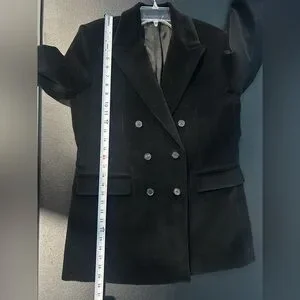 Kooples Womens Black Corduroy Double Breasted Jacket 100% Cotton NWT EU 40/8