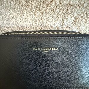 Chic black crossbody bag by Karl Lagerfeld. Sleek design with adjustable strap. Ideal for everyday use.