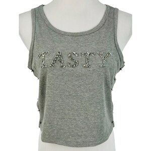 Get ready to sparkle and sizzle with this "Tasty" tank! This top screams confidence and 'I'm here to party!' The side clasps/safety-pins add a unique twist, perfect for those who like their fashion like their humor—edgy and unforgettable.