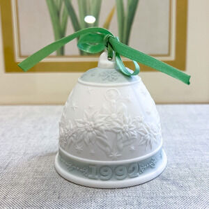Vintage Lladro 1992 Green Christmas Bell Ornament Decor Porcelain Spain With BOX