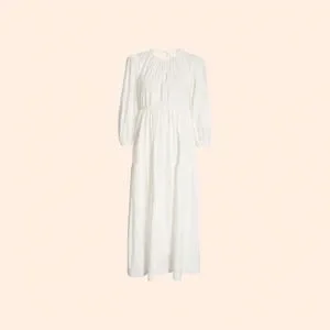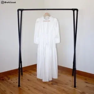 Light as air backless white midi dress. Prairie woman in the front, city girl in the back. 3/4 sleeves, pouf on the shoulder, and gathered waist. Perfect for toastie days when you’d rather be naked but need to go to the grocery store or like tend ye olde vegetable garden. Reposhing after wearing it once or twice and then sizing out thanks to the GLP-1s