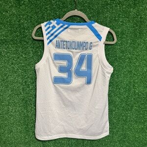 HGC jersey in white with blue stripe. Features bold lettering and number.