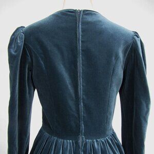 VTG LAURA ASHLEY S M Velour Velvet Whimsigoth Goth Witchy Midi Maxi Teal Dress