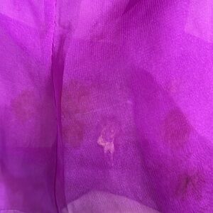 Dress has spots/ stains throughout one pull on bottom back hem also one gem missing from bodice.