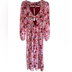 Vici Floral Twist Cutout Long Sleeve Midi Dress - Size M