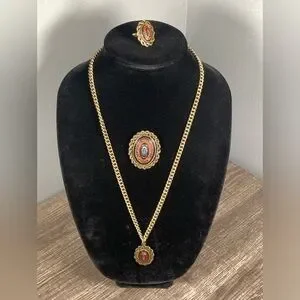 OLD VIENNA Sarah Cov Coventry Set Necklace & Detachable Brooch Ring Vintage. These are in excellent preowned condition. They have no signs of use and were well taken care of. The brooch measures roughly 1.8” x 1.4”. The necklace measures 24.5” and the small pendant the brooch attaches to measures 1.25” x 1”. The ring is sized at 5.5. Please message me prior to purchase with any questions. Thank you!