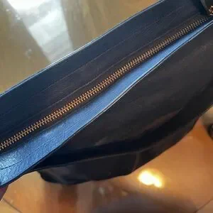 Black bag from fossil. Super soft. Side zip pocket. Zipper pocket inside with two slip pockets. Fossil key hang. Small spot in the bottom of the bag as shown in pictures. See photo.